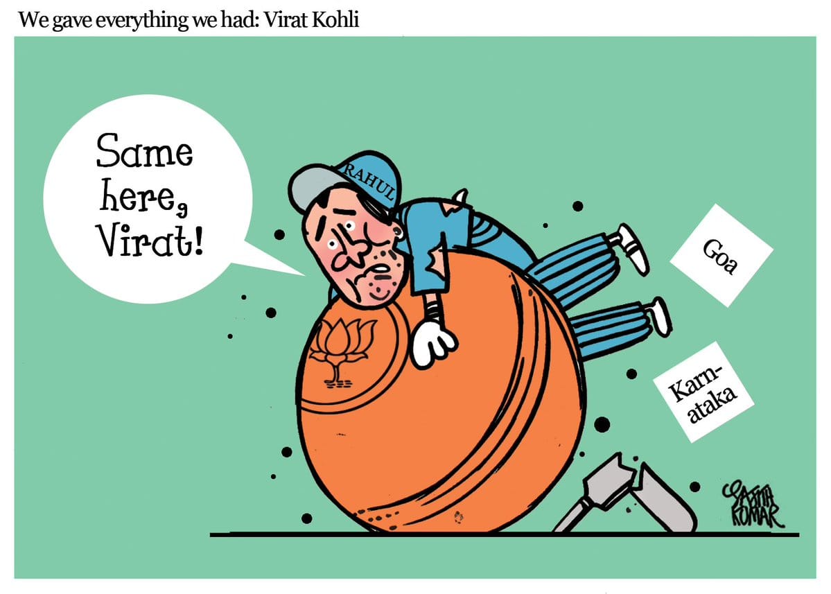 साजिथ कुमार क्रिकेट विश्व कप में भारतीय क्रिकेट टीम की हार और कांग्रेस के कर्नाटक और गोवा संकट के बीच का सामानांतर चित्रण करते हैं.
