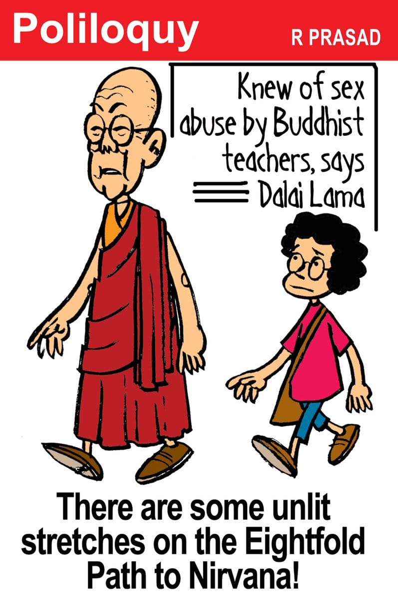 आर .प्रसाद बौद्ध धर्म के महान अष्टांगिक मार्ग का जिक्र करते हुए, जो मोक्ष की ओर ले जाता है, नीदरलैंड में दलाई लामा के हालिया वक्तव्यों पर तंज करते हैं. जहां पर तिब्बती नेता ने कहा कि वह हमेशा बौद्ध शिक्षकों द्वारा यौन शोषण के बारे में जानते थे.