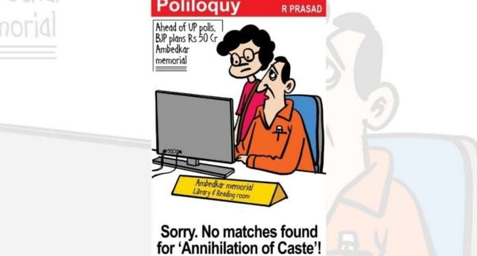आज के फीचर्ड कार्टून में 2022 के विधानसभा चुनावों के पहले 50 करोड़ रुपये की लागत वाले आंबेडकर मेमोरियल बनाने के सरकार के फैसले के पर कटाक्ष कर रहे हैं आर प्रसाद.