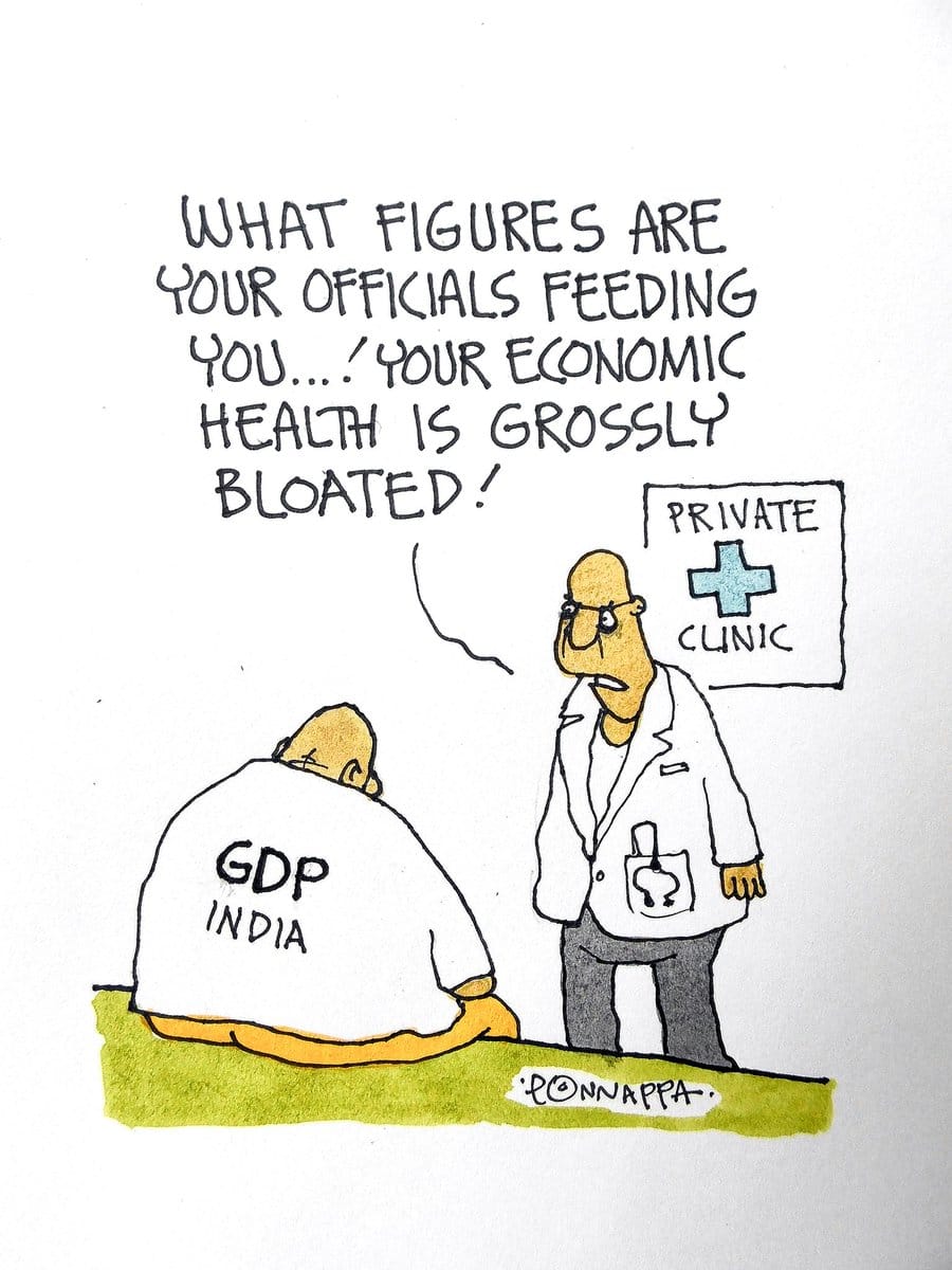 नाला पोन्नपा जीडीपी की संख्या के विवाद पर कटाक्ष करते हैं. पूर्व सीईए अरविंद सुब्रमण्यम ने दावा किया है कि 2011-12 और 2016-17 के बीच भारत की जीडीपी वृद्धि 2.5 प्रतिशत अंक से ज्यादा आंकी गयी थी.