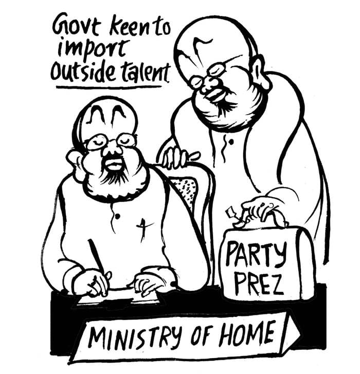 डोमेन विशेषज्ञों को लाने के लिए मोदी सरकार के कदम का जिक्र करते हुए ईपी उन्नी भाजपा अध्यक्ष के रूप में अमित शाह की सफलता पर कटाक्ष करते हैं. जो कि उन्हें केंद्रीय मंत्रिमंडल में गृह मंत्री नियुक्त किए जाने के बावजूद अध्यक्ष पद पर बने रहने के लिए पसंदीदा बनाता है.