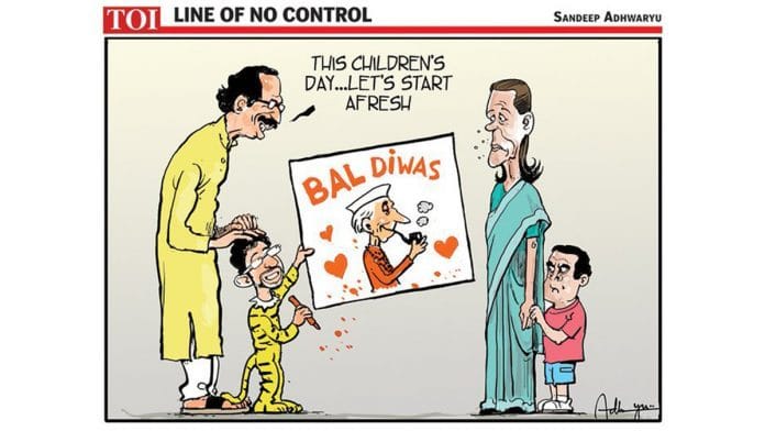 आज के फीचर कार्टून में संदीप अध्वर्यु पंडित जवाहरलाल नेहरू के जन्मदिन और बाल दिवस का उत्सव मना रहे हैं और महाराष्ट्र में कांग्रेस-शिवसेना के संभावित गठजोड़ पर निशाना साध रहे हैं.