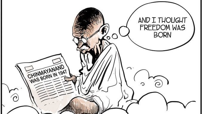 आज के फीचर कार्टून में संदीप अधर्व्यु पूर्व भाजपा मंत्री चिन्मयानंद के 1947 में जन्म लेने को आज़ादी से जोड़ रहे हैं. चिन्मयानंद पर बलात्कार का आरोप है. कार्टूनिस्ट के अनुसार महात्मा गांधी को अगर यह बात पता चलती तो वो कतई खुश नहीं होते.