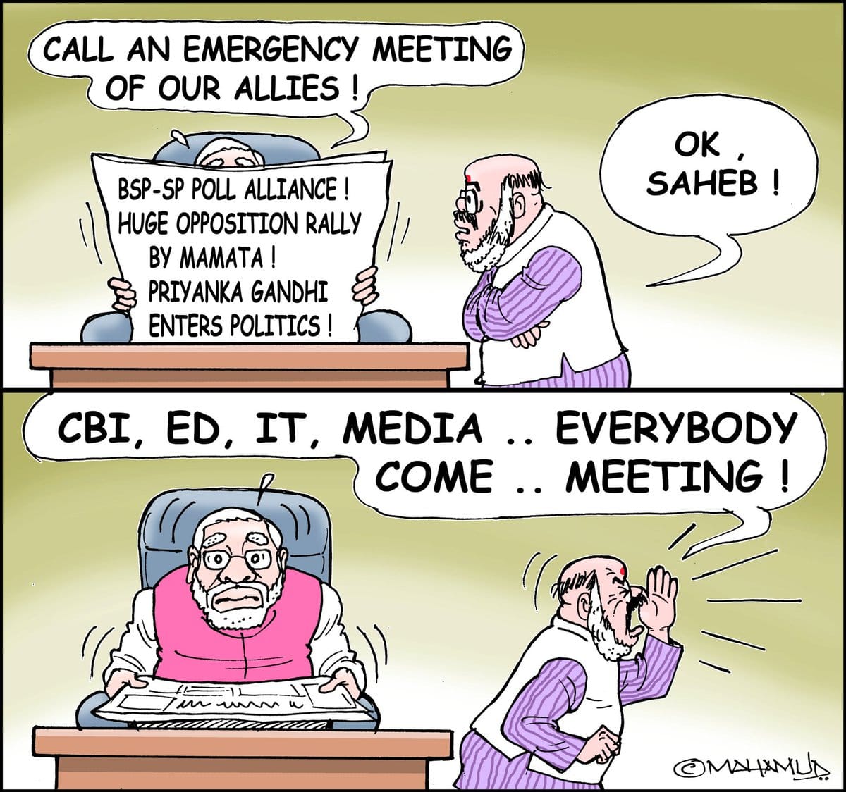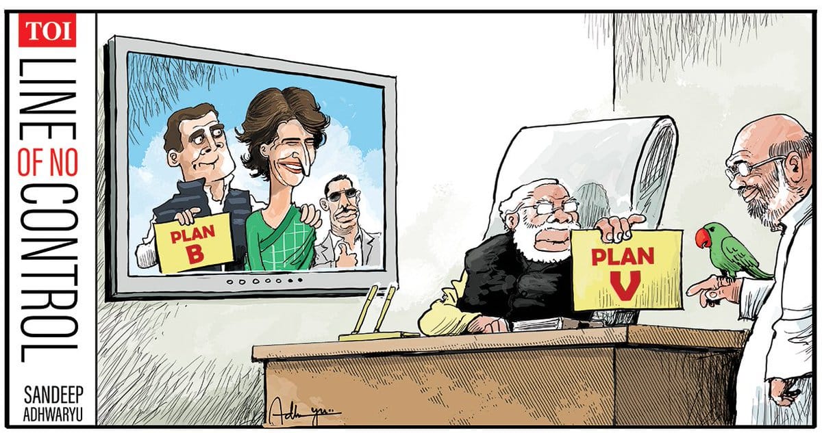 महमूद कांग्रेस द्वारा प्रियंका गांधी को लेकर किए गए घोषणा के बाद प्रधानमंत्री नरेंद्र मोदी और भाजपा अध्यक्ष अमित शाह की अनुमानित प्रतिक्रिया को बताते हुए.