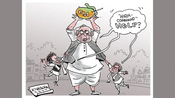 सतीश आचार्य उन मीडिया चैनलों पर कटाक्ष कर रहें हैं, जिन्होंने कर्नाटक के अगले मुख्यमंत्री पर गहराते संकट के बीच कांग्रेस की ‘हाईकमान‘ संस्कृति को सोनिया और राहुल गांधी के लिए एक व्यंजना बताया है.