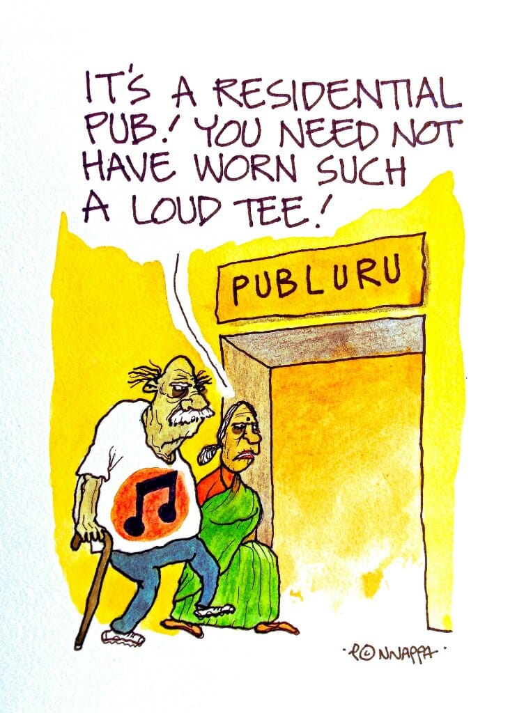 नाला पोनप्पा निवासियों पर तंज करते है ,जिन्होंने तेज म्यूजिक और बेंगलुरू के इंदिरा नगर में पब जाने वालों के कथित अपमानजनक व्यवहार के खिलाफ विरोध किया था।