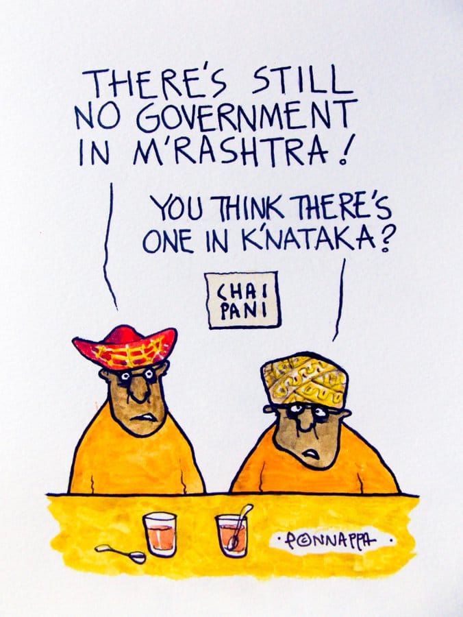 पोनप्पा कर्नाटक सरकार पर तंज करते हैं और यह दर्शाते हैं कि महाराष्ट्र में अभी तक सरकार का गठन नहीं हुआ है.