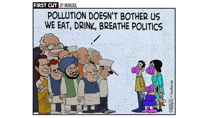 आज के फीचर कार्टून में मंजुल ने प्रदूषकों पर टिप्पणी की है, जो दिल्ली की वायु की गुणवत्ता को खराब कर रहे हैं.