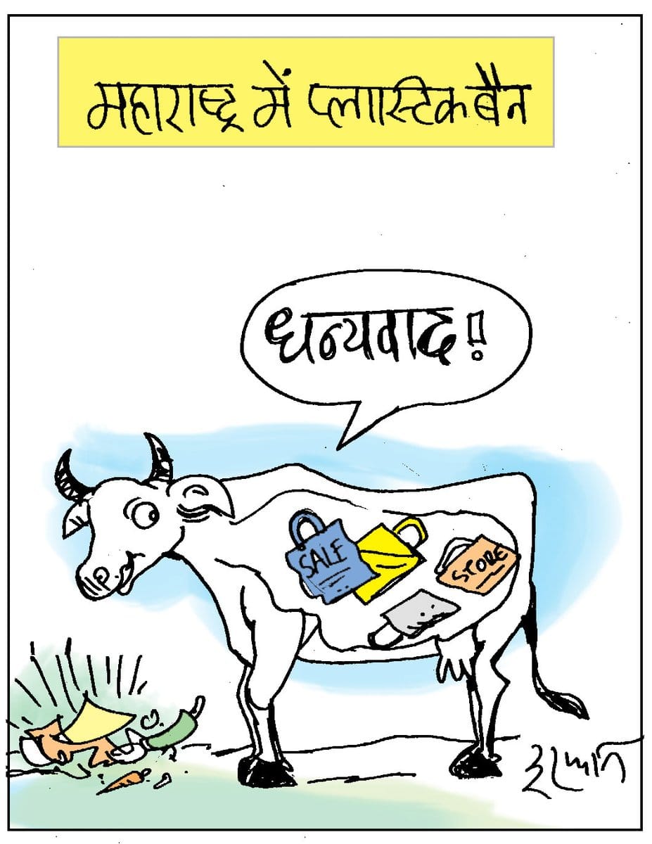 कार्टूनिस्ट इरफान ने महाराष्ट्र सरकार के राज्य में प्लास्टिक बैग पर प्रतिबंध लगाने के फैसले पर अपना रुख दर्शाया है, यह सुझाव देते हुए कि यह लावारिस पशुओं के लिए भी एक स्वागतकारी बदलाव है, जो अक्सर प्लास्टिक के बैग का उपभोग करते हैं। राज्य में यह निर्णय शनिवार को प्रभावी हुआ।