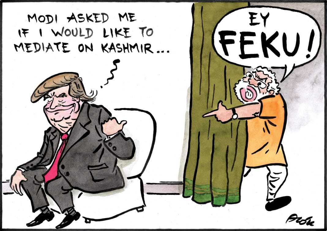 आलोक निरंतार ने अमेरिकी राष्ट्रपति डोनाल्ड ट्रंप द्वारा कश्मीर पर मध्यस्थता के लिए पीएम नरेंद्र मोदी द्वारा दावा किए जाने के बाद उत्पन्न तनाव को दर्शाया है.