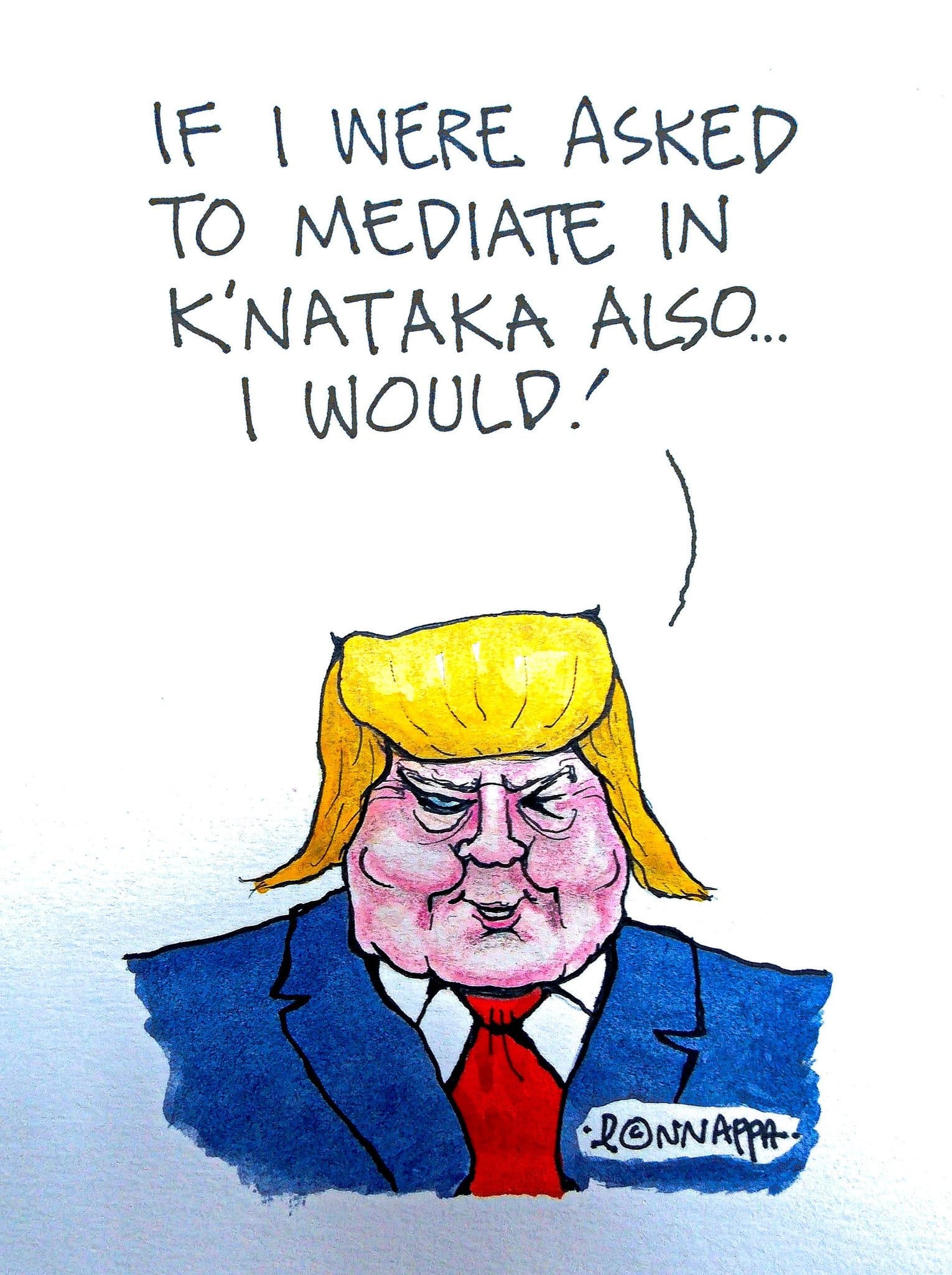 नाला पोनप्पा ने अमेरिकी राष्ट्रपति डोनाल्ड ट्रम्प के हालिया दावों पर कटाक्ष किया, जिसमें कश्मीर पर मध्यस्थता के लिए कहा है, जबकि कर्नाटक को प्रभावित करने वाली पक्षपातपूर्ण राजनीति का भी जिक्र किया है.