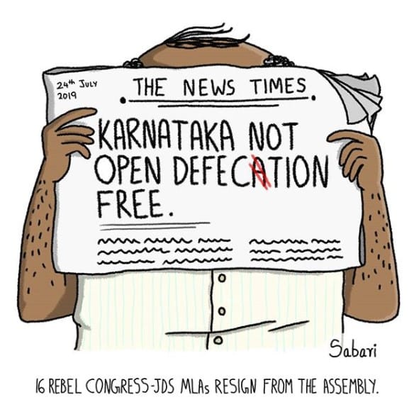 सबरी वेणु ने कर्नाटक में हाल के संकट पर कटाक्ष किया है, जिसके कारण मंगलवार को एचडी. कुमारस्वामी की कांग्रेस-जेडी (एस) सरकार गिर गई, क्योंकि यह विश्वास मत परीक्षण में बहुमत साबित करने में विफल रही.