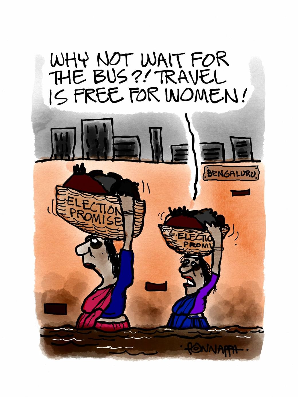 नाला पोनप्पा कर्नाटक के मुख्यमंत्री सिद्धारमैया की ‘सरकारी बसों’ में यात्रा करने वाली महिलाओं को मुफ्त बस पास प्रदान करने की घोषणा पर तंज कस रहे हैं.