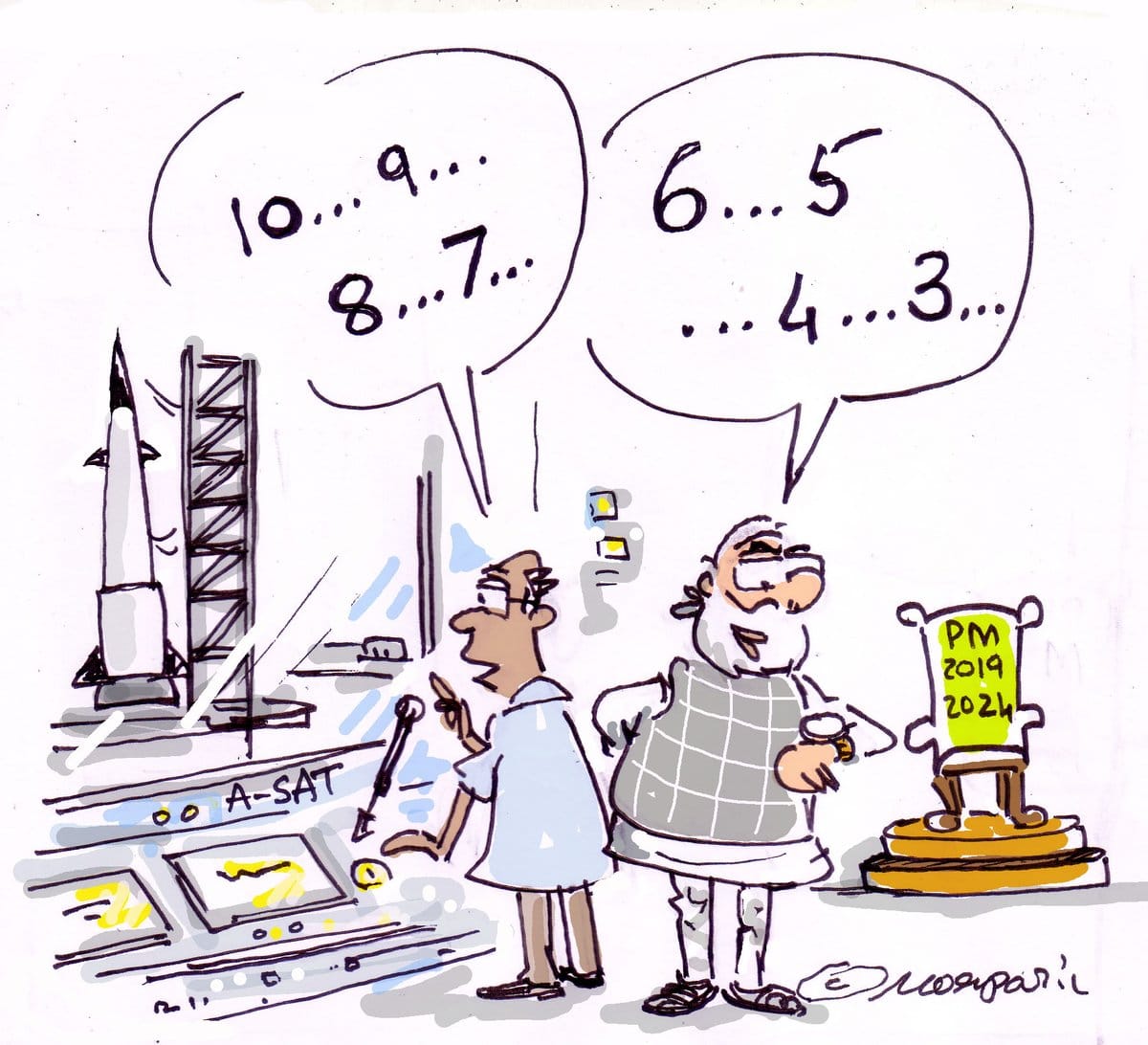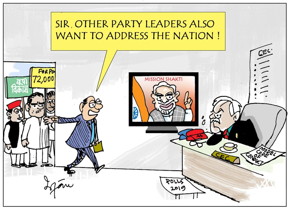 प्रधानमंत्री नरेंद्र मोदी के द्वारा बुधवार को ‘मिशन शक्ति’ की घोषणा के बाद कार्टूनिस्ट महमूद चुनाव आयोग के ‘आदर्श आचार संहिता’ पर कटाक्ष किया है.