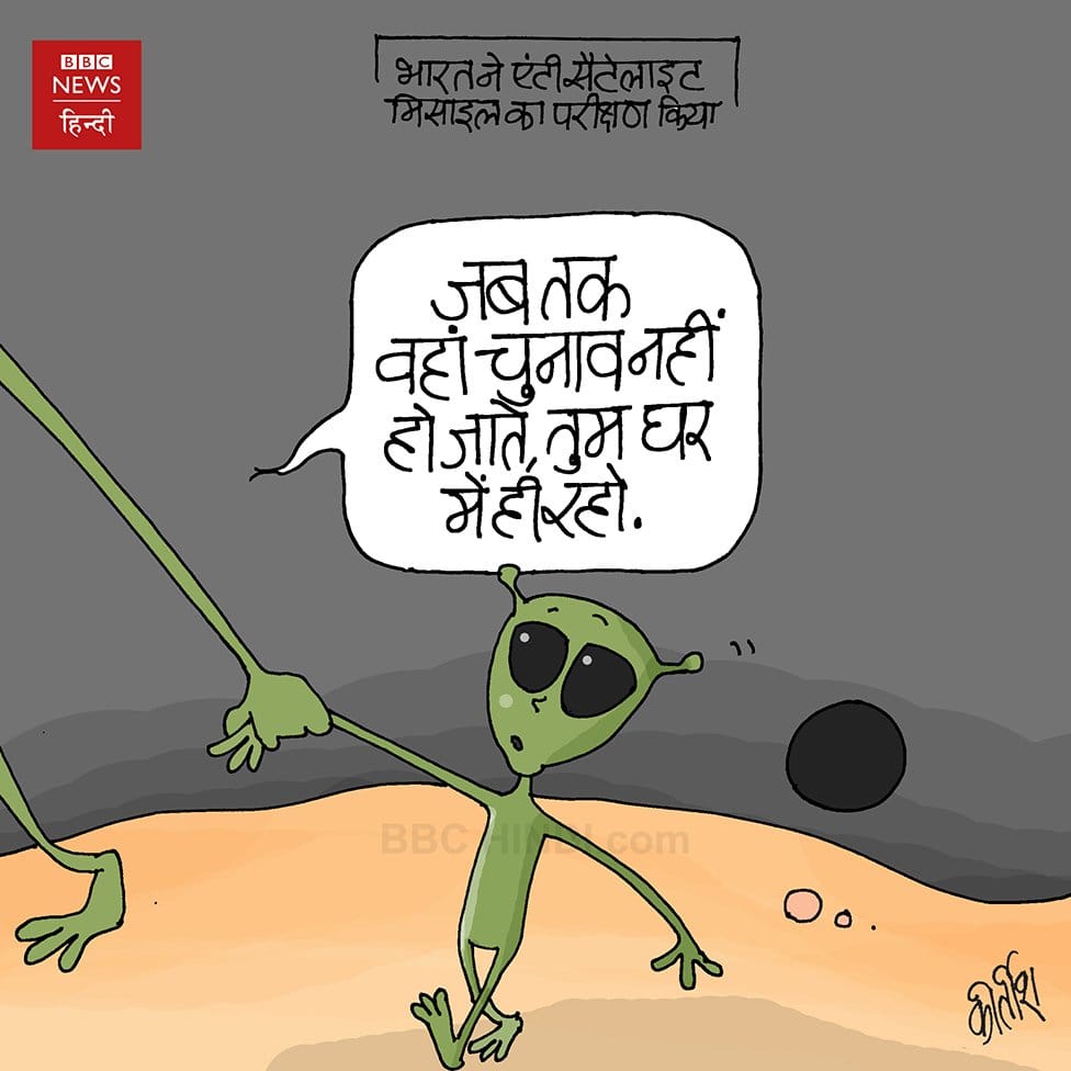 बीबीसी हिंदी के कीर्तीश भट्ट ने मोदी सरकार पर तंज किया है, ए-सैट मिसाइल परीक्षण से यह पता चलता है कि चुनाव का मौसम एलियनों के लिए कठिन समय है.