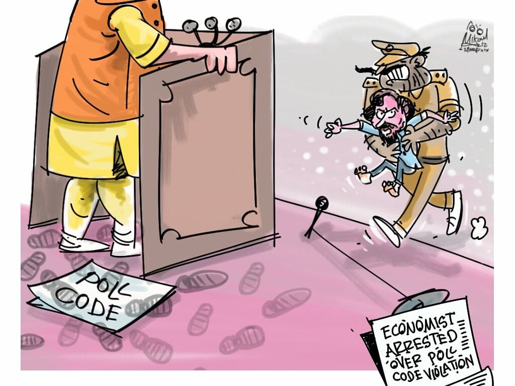 मीका अजीज प्रसिद्ध अर्थशास्त्री ज्यां द्रेज के आदर्श संहिता के कथित उल्लंघन पर गिरफ्तार किए जाने की विडंबना पर टिप्पणी करते हैं.