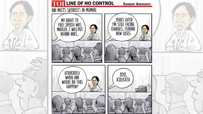 आज के फीचर्ड कार्टून में संदीप अध्वर्यु पश्चिम बंगाल की सीएम ममता बनर्जी को मंबई के एक प्रोग्राम में खुद को ‘फ्री स्पीच चैंपियन’ बताने के लिए उनपर तंज कस रहे हैं. वो बता रहे हैं कि उनके प्रशासन ने साल 2012 में जादवपुर यूनिवर्सिटी के एक प्रोफेसर को ममता का मीम ईमेल पर फॉरवर्ड करने के आरोप में गिरफ्तार किया था.