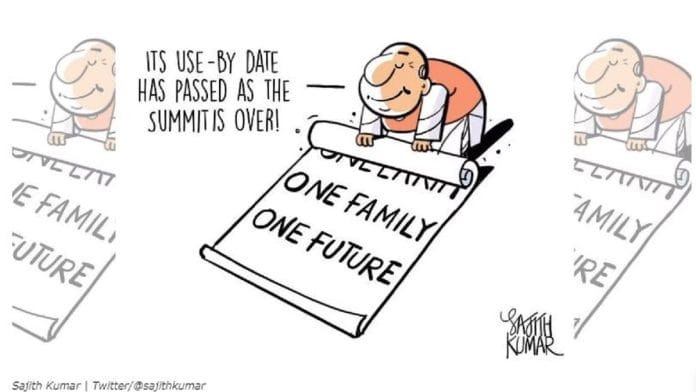 आज के विशेष रूप से प्रदर्शित कार्टून में, साजिथ कुमार ने नई दिल्ली में हाल ही में आयोजित जी20 शिखर सम्मेलन पर प्रकाश डाला है, और मजाकिया ढंग से बता रहे हैं कि कैसे वैश्विक शिखर सम्मेलन के समापन की तरह, इसकी थीम, ‘एक पृथ्वी, एक परिवार, एक भविष्य’ का भी समापन हो गया है.