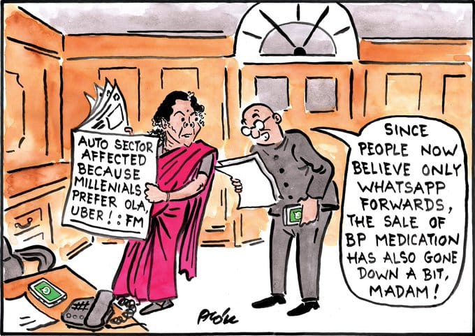 आलोक निरंतर वित्त मंत्री निर्मला सीतारमण पर उनके बयान को लेकर तंज कस रहे हैं. सीतारमण ने कहा था कि कार की बिक्री में में गिरावट का कारण कैब है.