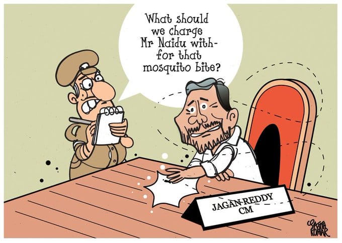 सजिथ कुमार आंध्र प्रदेश में टीडीपी और वाईएसआर कांग्रेस के बीच चल रहे तनावों को चित्रित कर रहे हैं. बुधवार को चंद्रबाबू नायडू और उनके बेटे को नज़रबंद कर लिया गया था. नायडू राज्य सरकार के खिलाफ विरोध मार्च करने जा रहे थे.