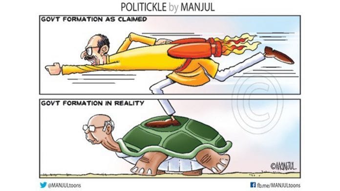 आज के फीचर कार्टून में मंजुल महाराष्ट्र में सरकार बनने को लेकर चले रहे गतिरोध पर निशाना साध रहे हैं. क्या एनसीपी के शरद पवार धीरे-धीरे रेस जीत पाएंगे?