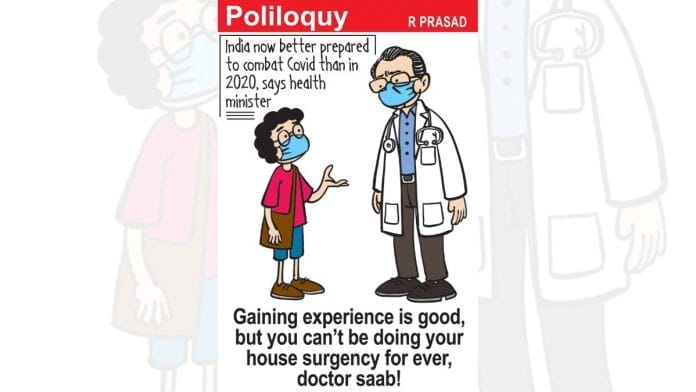 आज के फीचर कार्टून में, आर. प्रसाद ने केंद्रीय स्वास्थ्य मंत्री हर्षवर्धन द्वारा भारत के कोविड की तैयारियों और उपलब्ध संसाधनों पर उनकी टिप्पणियों पर कटाक्ष किया है.