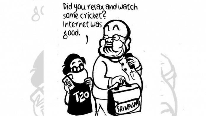 आज के फीचर कार्टून में ई.पी उन्नी रविवार को केंद्रीय गृह मंत्री अमित शाह के श्रीनगर में होने और उसी दौरान दुबई में हुए आईसीसी टी20 विश्व कप में भारत और पाकिस्तान मैच को, साल 2019 में अनुच्छेद 370 हटाने के बाद घाटी में महीनों तक बंद रहे इंटरनेट से जोड़ कर देख रहे हैं.