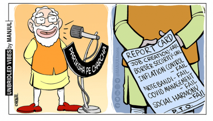 आज के फीचर कार्टून में मंजुल पीएम नरेंद्र मोदी की ‘परीक्षा पे चर्चा’ पर तंज कस रहे हैं. वो दिखा रहे हैं पीएम मोदी खुद अपनी खराब रिपोर्ट कार्ड बच्चों से छुपा रहे हैं.