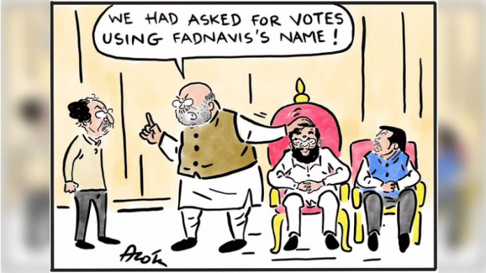 आज के विशेष रूप से प्रदर्शित कार्टून में, आलोक निरंतर केंद्रीय गृह मंत्री अमित शाह की मुंबई यात्रा पर टिप्पणी कर रहे हैं, जिसके दौरान उन्होंने सीएम एकनाथ शिंदे से मुलाकात की और कथित तौर पर भाजपा नेताओं से कहा कि उद्धव ठाकरे के नेतृत्व वाली शिवसेना ने 2019 में पीएम मोदी के नाम और देवेंद्र फडणवीस द्वारा किए गए कार्यों पर ‘वोट मांगे’.