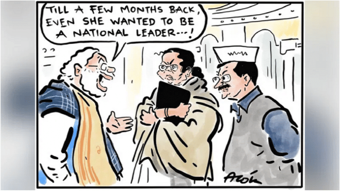आज के प्रदर्शित कार्टून में, आलोक निरंतर ने आम आदमी पार्टी (आप) के प्रमुख अरविंद केजरीवाल के राष्ट्रीय नेता बनने की इच्छा को दर्शाया है, जिसके लिए उन्होंने हाल के राज्य चुनावों में, विशेष रूप से गुजरात में पूरी ताकत लगा दी. वह दिखाते हैं कि दिल्ली में जी20 शिखर सम्मेलन पर एक सर्वदलीय बैठक से पहले, पश्चिम बंगाल की सीएम ममता बनर्जी ने मतदान के दिन ‘रोड शो’ के लिए पीएम की आलोचना की थी.