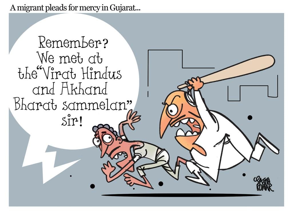 साजिथ कुमार भी गुजरात राज्य से जबरन प्रवासियों को बाहर निकालने पर टिप्पणी करते हैं.