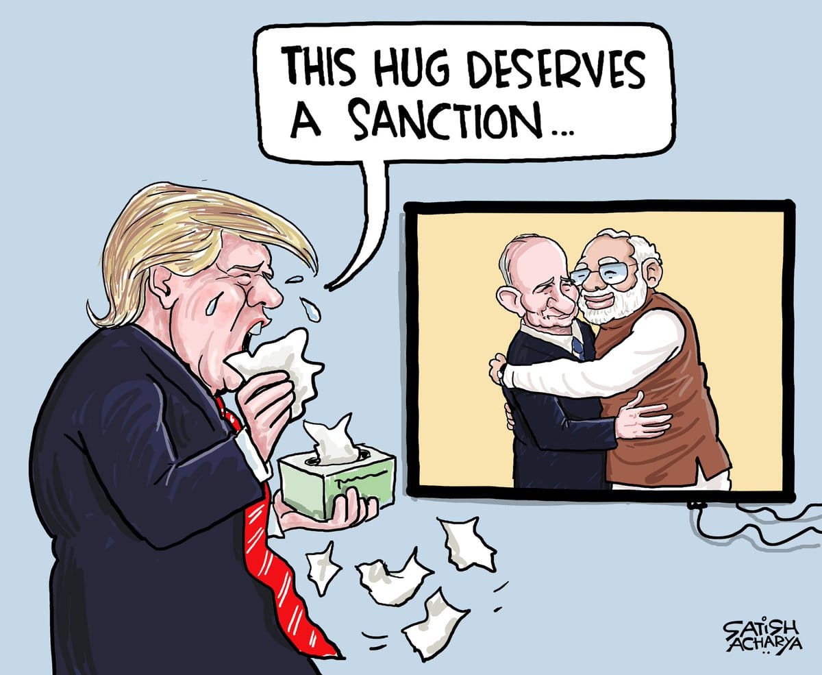 सतीश आचार्य सुझाव देते है कि भारत और रूस के बीच रक्षा समझौता के कारण डोनाल्ड ट्रम्प प्रशासन से प्रतिबंध लग सकता है.