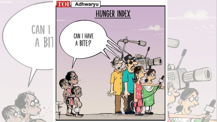 आज के फीचर कार्टून में संदीप अध्वर्यू ‘बाइट’ पर यह दिखाने के लिए तंज कर रहे हैं कि ग्लोबल हंगर इंडेक्स 2021 में देश के खराब प्रदर्शन को भारतीय मीडिया ने नज़रअंदाज़ किया है.