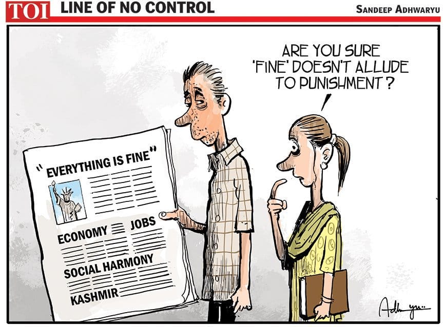संदीप अध्वर्यु टाइम्स ऑफ इंडिया में प्रधानमंत्री के बयान ‘भारत में सब कुछ अच्छा है’ की विडंबना को दर्शाते हैं. प्रधानमंत्री ने रविवार को हाउडी मोदी कार्यक्रम में कहा था कि भारत में सब कुछ अच्छा है.