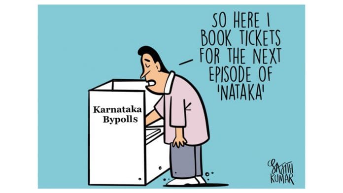 आज के फीचर कार्टून में साजिथ कुमार कर्नाटक उपचुनाव पर तंज कसते हुए पूछ रहे हैं कि क्या हम राजनीतिक ड्रामे का दूसरा सीजन देख रहे हैं.