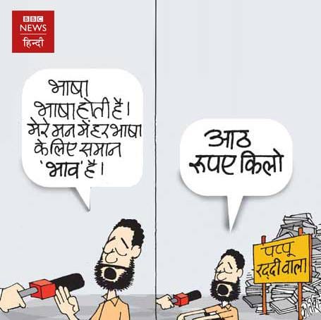 बीबीसी न्यूज़ में कीर्तीश भट्ट भाषा के मुद्दे पर तंज कस रहे हैं. कीर्तिश दर्शाते हैं कि मैं सभी भाषा का सम्मान करता हूं.