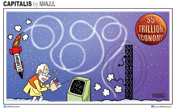 मंजुल इसरो के चंद्रयान -2 की असफल लैंडिंग और नरेंद्र मोदी सरकार के अंतर्गत मौजूदा आर्थिक स्थिति को दर्शा रहे हैं.