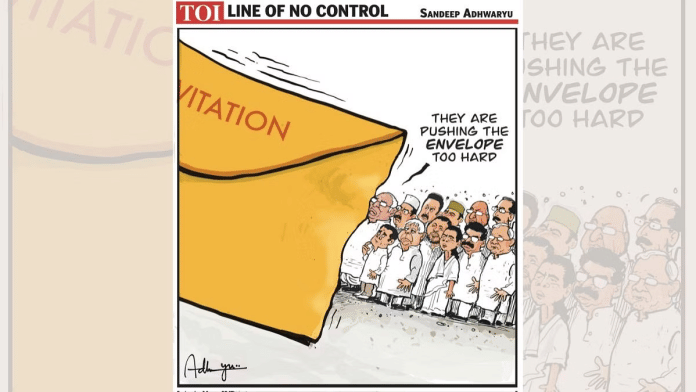 आज के विशेष कार्टून में, संदीप अध्वर्यु ने अयोध्या में बहुप्रतीक्षित राम मंदिर के उद्घाटन को दर्शाया है. जबकि विपक्ष ने धर्म के राजनीतिकरण के आधार पर सरकार के ‘निमंत्रण’ को खारिज कर दिया.