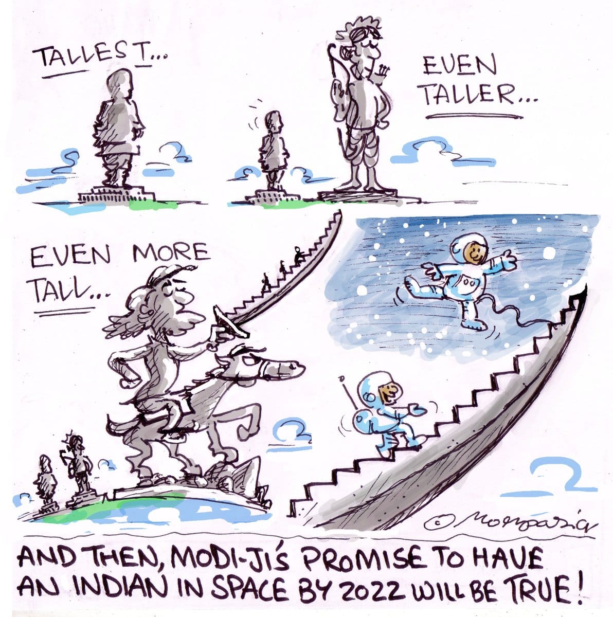 हेमंत मारपारिया उत्तर प्रदेश के मुख्यमंत्री योगी आदित्यनाथ के द्वारा अयोध्या में भगवान राम की विशाल मूर्ति बनाने के प्रस्ताव पर आश्चर्य प्रकट किया है. इसकी तुलना 2022 तक भारतीयों को अंतरिक्ष में भेजने के लिए प्रधानमंत्री मोदी के विचार से करते हैं. उन्होंने यह भी सुझाव दिया कि मूर्ति निर्माण के इस दर से उन्हें अंतरिक्ष तक पहुंचने के लिए अंतरिक्ष यान की आवश्यकता भी नहीं पड़ेगी.