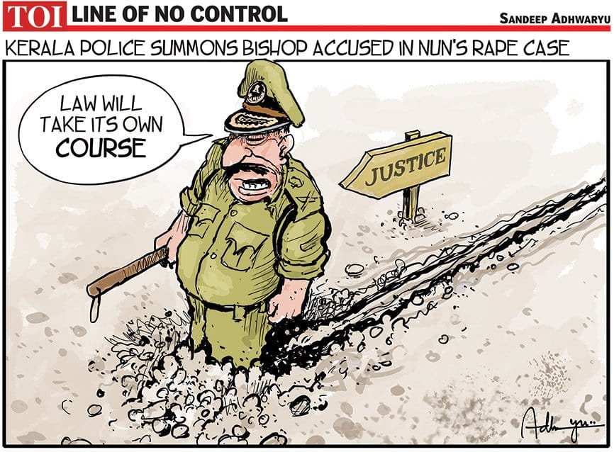 द टाइम्स ऑफ इंडिया में संदीप अध्वर्यु ने न्याय के कठिन मार्ग अपनाने के लिए केरल पुलिस की आलोचना की. बिशप फ्रैंको मुलक्कल पर नन के रेप मामलें में अभियुक्त हैं और आख़िरकार काफी विरोध प्रदर्शन के बाद पुलिस ने उसे तलब कर लिया. पिछले महीने, केरल पुलिस ने उच्च न्यायालय को रेप के बारे में सूचित किया था, लेकिन मुलक्कल को गिरफ्तार नहीं किया गया था.