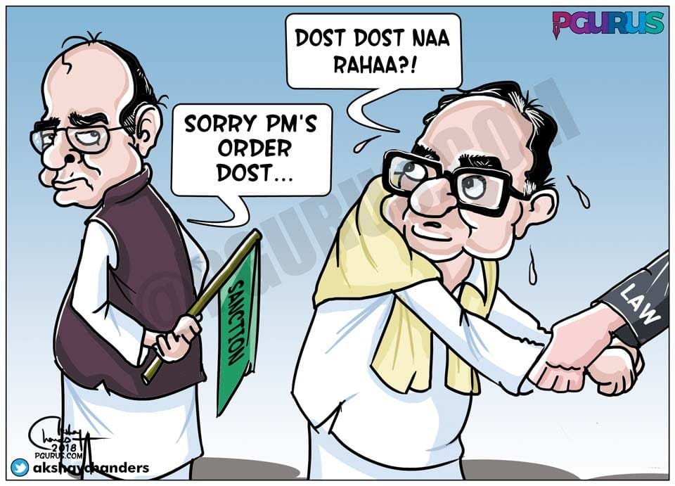 अक्षय चंदेर टिप्पणी करते हैं कि सीबीआई ने पूर्व केंद्रीय मंत्री पी चिदंबरम के खिलाफ एयरसेल मैक्सिस मामले में अभियोग चलाने के लिए संबंधित मंजूरी प्राप्त कर ली है. वित्त मंत्री अरुण जेटली के बारे में यह अफवाहें थीं कि वे अपने दोस्त को बचाने की कोशिश कर रहे थे.