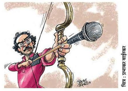 प्रभाकर वाईरकर उद्धव ठाकरे की अयोध्या की यात्रा को दर्शाते हैं, जहां पर उन्होंने राम मंदिर की राजनीति को लेकर अपनी सहयोगी भाजपा पर वार किया है.