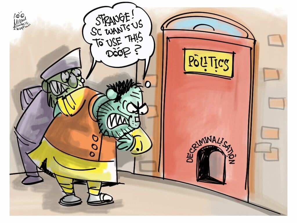 सुप्रीम कोर्ट ने मंगलवार को कहा कि राजनीति से अपराध ख़त्म करना संसद का कर्तव्य है. मंजुल इस पर कटाक्ष करते है.