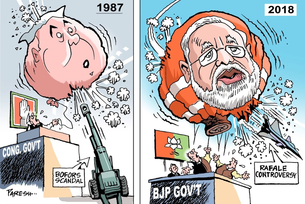 परेशनाथ तीन दशक पहले कांग्रेस को बोफ़ोर्स के कारण होने वाली क्षति और राफल का मुद्दा जो भाजपा को अब नुकसान पंहुचा रहा है.दोनों पहलू को सामानांतर चित्रित करते है.