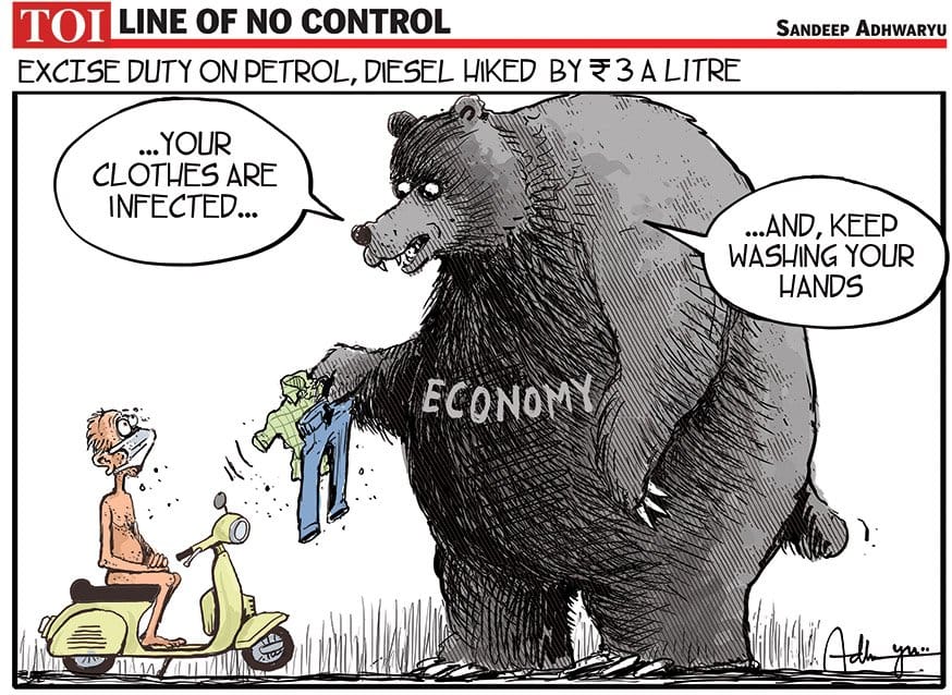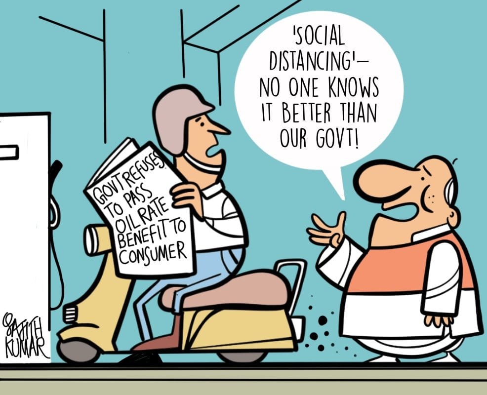 डेक्कन हेराल्ड में साजिथ कुमार ने वैश्विक कच्चे तेल की कीमतों में गिरावट के बाद भी उपभोक्ताओं के लिए तेल की कीमतों में गिरावट से इनकार करने के लिए मोदी सरकार पर कटाक्ष किया है.