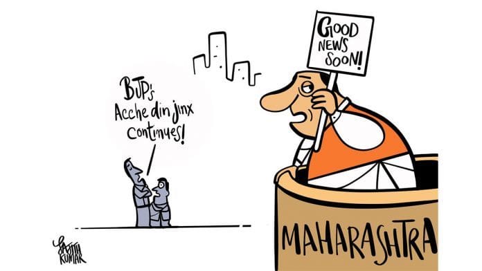 आज के फोटो कार्टून में सजिथ कुमार महाराष्ट्र में भाजपा शिवसेना के बीच चल रहे विवाद और राज्य विधानसभा के स्थगित होने पर निशाना साध रहे हैं.