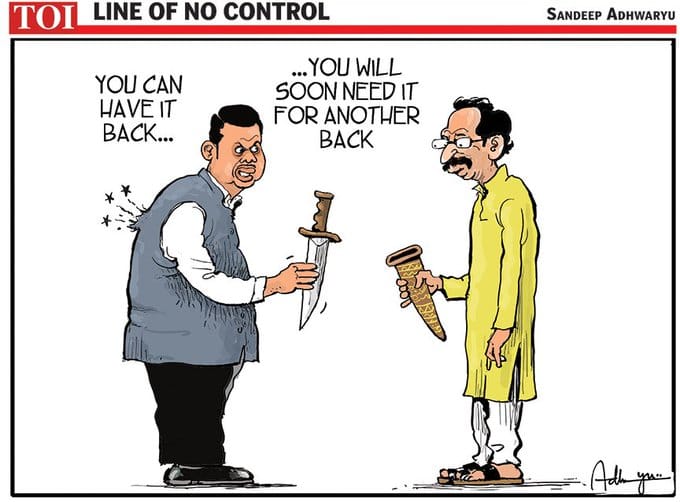 आज के फीचर कार्टून में संदीप अध्वर्यु महाराष्ट्र में सरकार के गठन में आने वाली अड़चनों को दर्शाते हैं.
