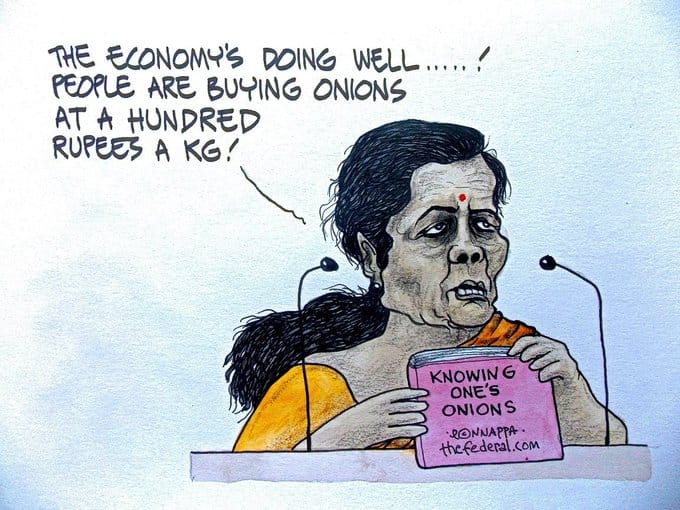 नाला पोन्नपा दर्शाते हैं कि सरकार ने यह मान लिया हैं कि आर्थिक मंदी तो हैं लेकिन बेरोज़गारी नहीं है. नाला पोन्नपा प्याज़ की कीमतों पर तंज करते हैं.