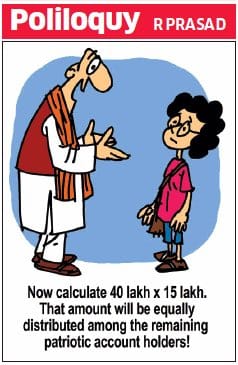 इकोनॉमिक टाइम्स में आर. प्रसाद 2014 में प्रधानमंत्री नरेंद्र मोदी के वादे पर तंज करते हैं जिसमे वादा किया गया था प्रत्येक गरीब व्यक्ति को 15 लाख रुपये दिए जायेंगे और विदेशी बैंकों में जमा काले धन को वापस लाया जा सकेगा। किन्तु अब 40 लाख लोगों को एनआरसी सूची के मसौदे से बाहर रखा गया है, एक आदमी बच्चे से गणित करने के लिए कह रहा है।