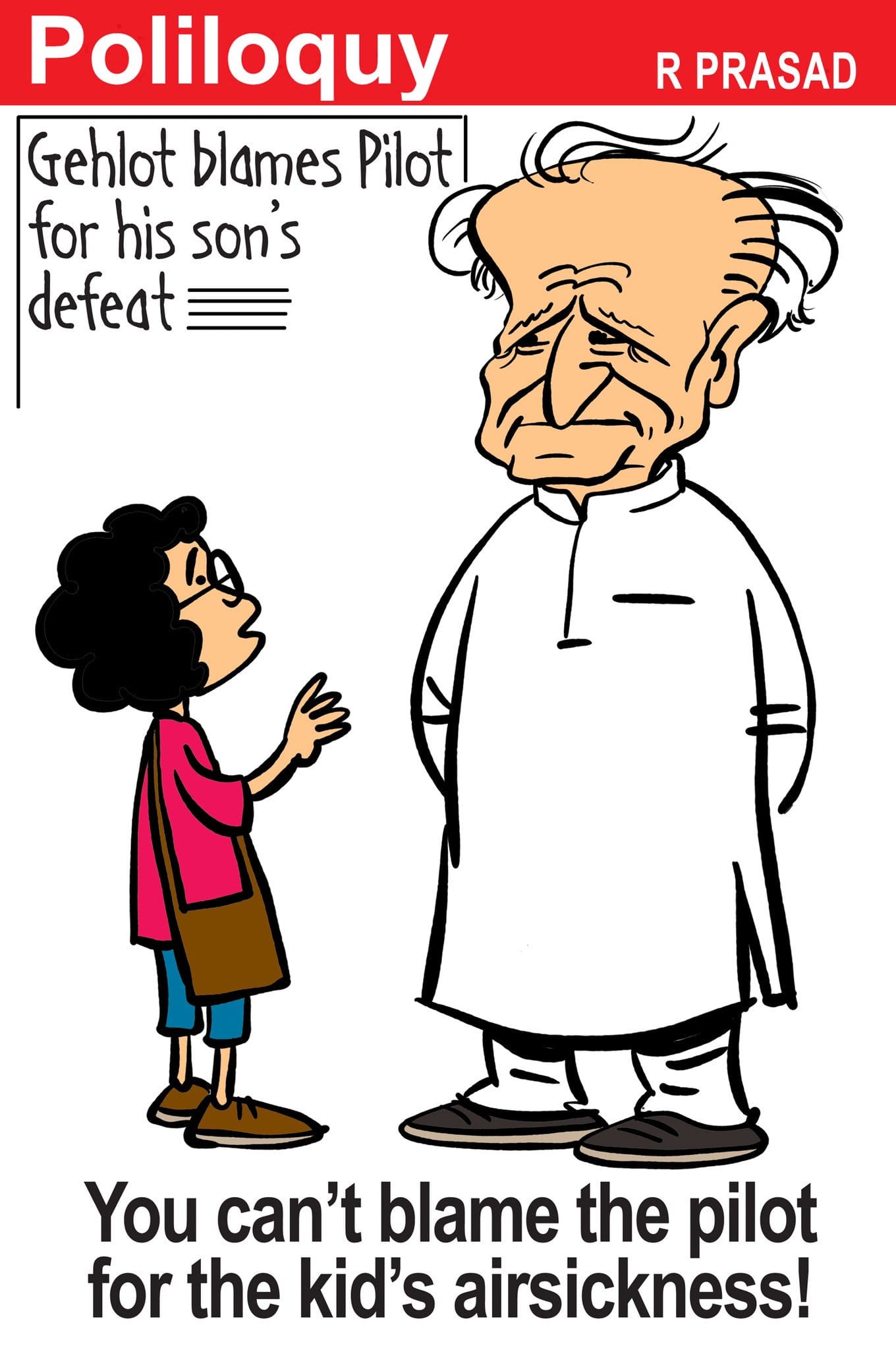 द इकोनॉमिक टाइम्स में आर प्रसाद राजस्थान के मुख्यमंत्री अशोक गहलोत की टिप्पणी पर कटाक्ष करते हैं. उन्होंने यह टिप्पणी की थी कि उनके बेटे वैभव गहलोत की लोकसभा चुनाव में हार के जिम्मेदार उपमुख्यमंत्री सचिन पायलट हैं.